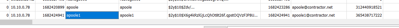 In the same table as the previous question, we see the IP that the contractor used to create their account: 10.10.0.78.